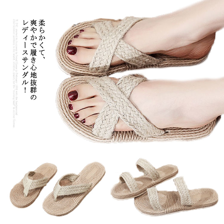 サンダル スリッパ レディース 鼻緒付き ルームシューズ 夏 歩きやすい 滑り止め 蒸れない靴 レディース靴 サンダル その他