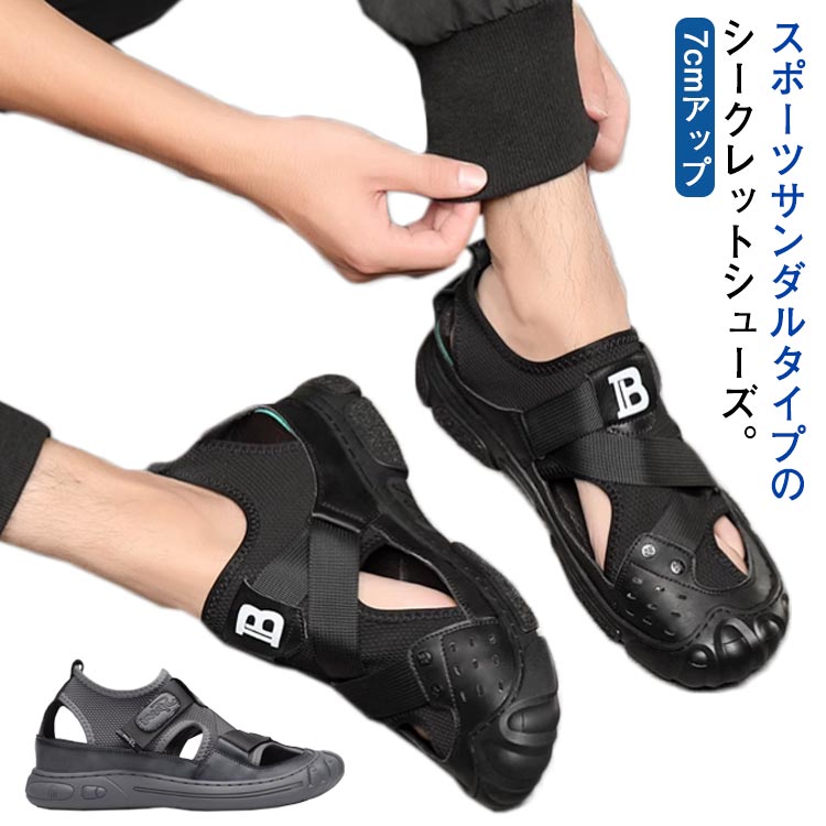 7cm 身長アップ シークレットシューズ サンダルタイプ サンダル仕様 ウォーキング サンダル靴 メンズ靴 サンダル スポーツサンダル