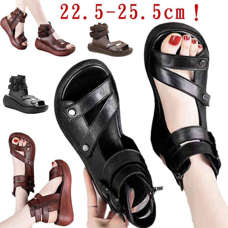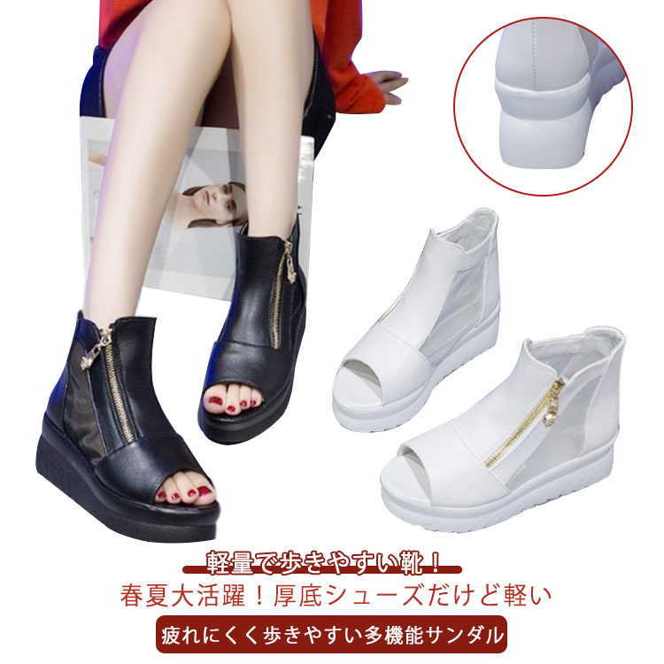 ブーツサンダル レディース 厚底 おしゃれ ウエッジソール サンダル オープントゥ靴 レディース靴 サンダル ブーツサンダル