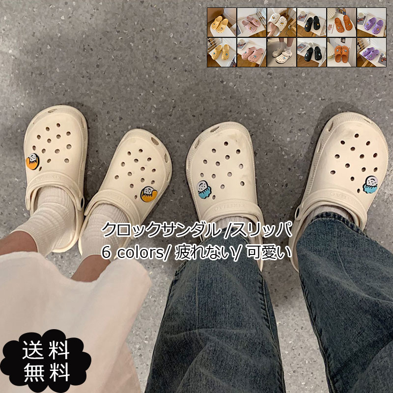 クロックサンダル レディース フラットシューズ スリッパ キャラクター柄 厚底 滑りにくい 履きやすい 歩きやすい 可愛い アウタドア 夏用 おしゃれ