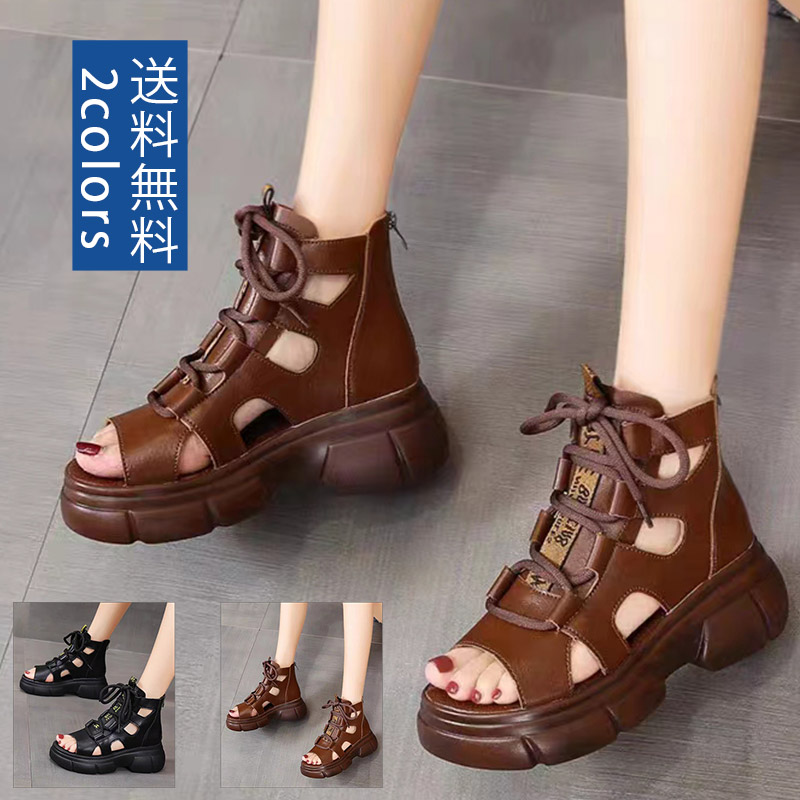 サンダル サマーブーツ 編み上げブーツ 編み上げサンダル 厚底 防滑靴 レディース靴 サンダル スポーツサンダル
