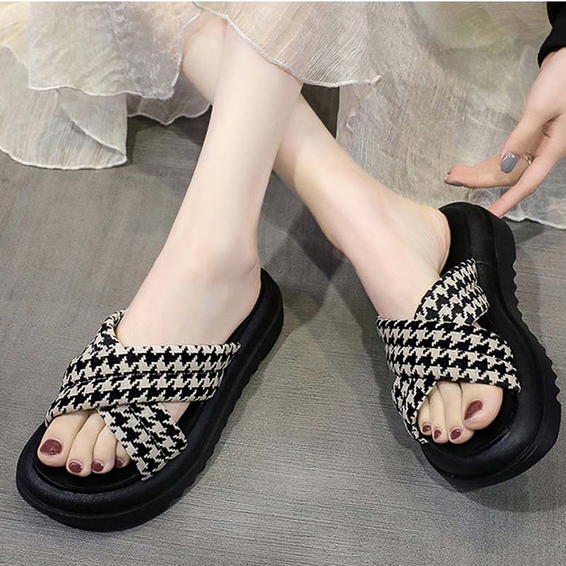 レディースビーチスリッパ チェック柄 部屋着 外出シューズ 厚底靴 レディース靴 サンダル スポーツサンダル