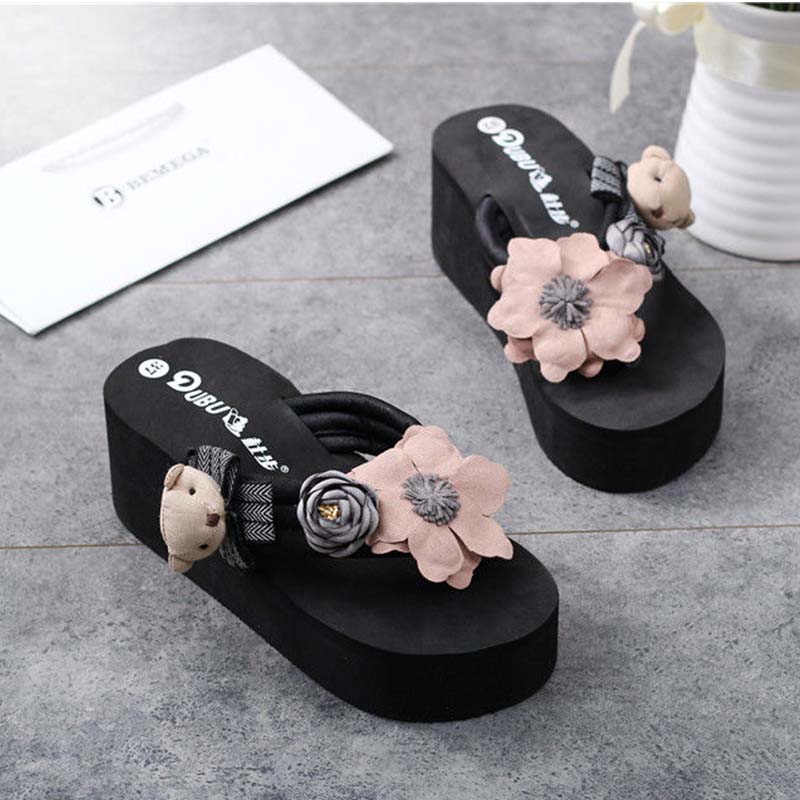 ビーチサンダル レディース 楽Sちん スリッパ カジュアル 夏 おしゃれ かわいい 厚底サンダル レジャー 花柄飾り 滑り止め 痛くない 美脚 疲れない 歩きやすい レディース 春 夏