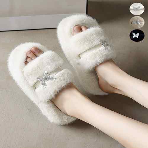 レディース もこもこ フェイクファー あったか フラットサンダル 美脚 カジュアル お洒落 暖かい コンフォート 可愛い ふわふわ冬サンダル 歩きやすいサンダル 韓国ファッション靴