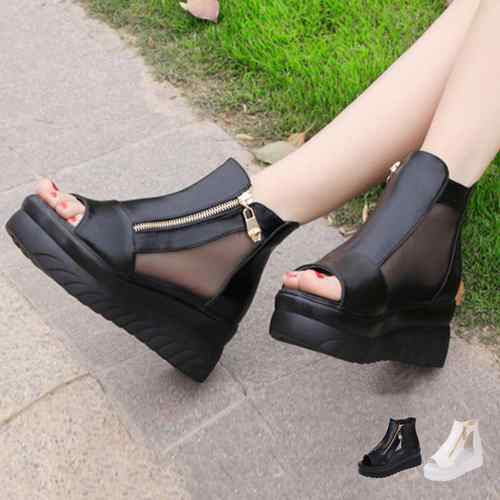 ブーツサンダル レディース 厚底サンダル ヒール 透かし レディース靴 ファスナー付き レース サンダル ヒールサンダル 疲れにくい 痛くない 歩きやすい サマーブーツ メッシュ