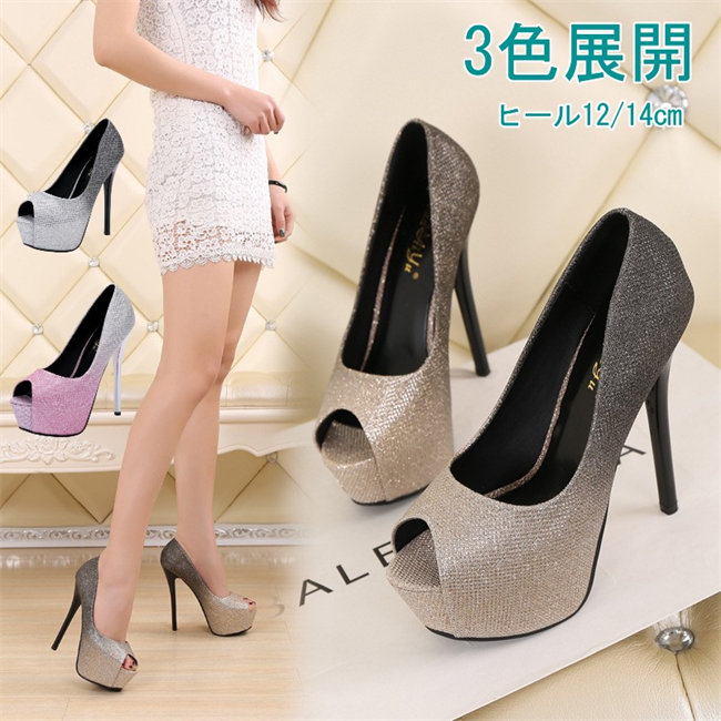 4色展開キャバ サンダル( 12 14ヒール ) パンプス ストーム厚底 靴 脱げない オープントゥ ハイヒール 結婚式 前厚 キャバシューズ ピンヒール オフィス 美脚 ブライダルシューズ キャ