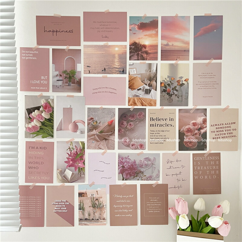 30枚セットポストカード2デザインカードチューリップ花フラワーセット韓国雑貨北欧アート春夏秋冬自然カラフルパステルポロライド イラストおしゃれ可愛い風景外国インテリア文字ロゴ英語ローズ