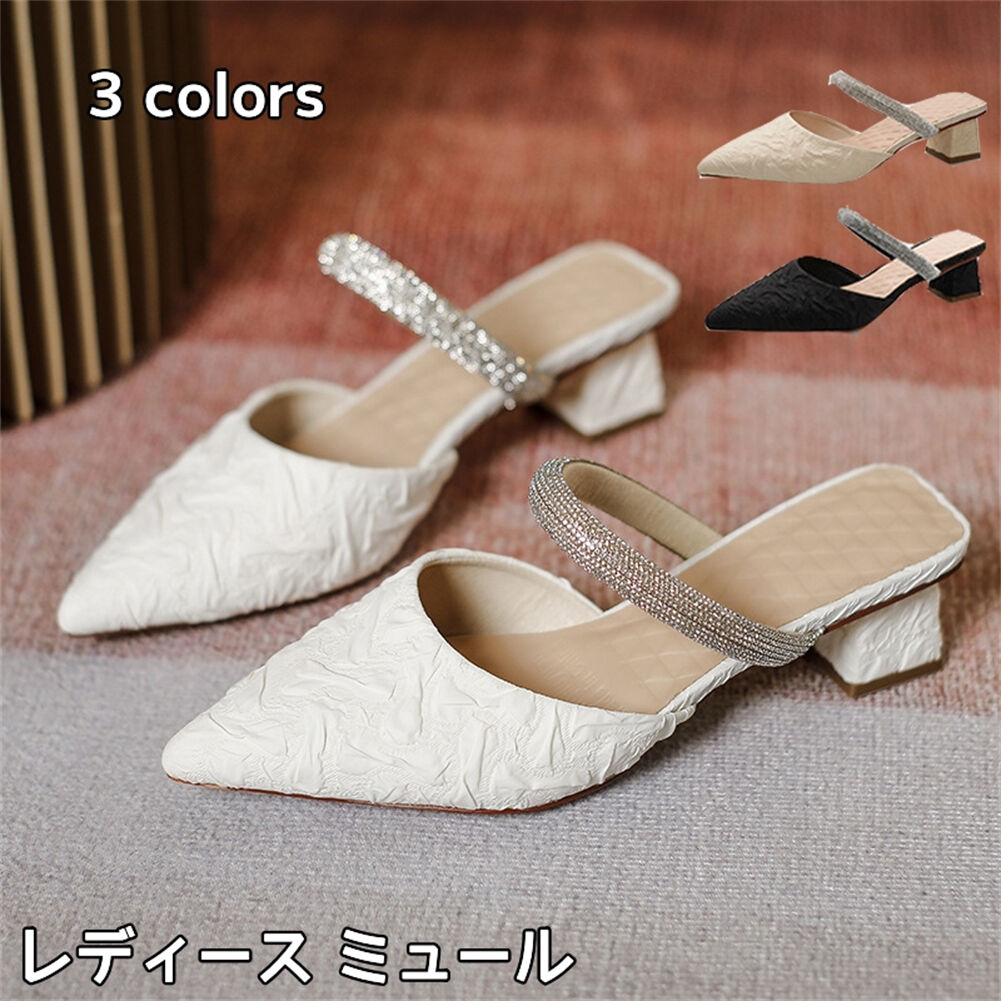 ミュール サンダル 春夏 レディース ローヒール 歩きやすい 素足で履ける 綺麗め 美脚 通勤 フォーマル 結婚式 二次会 女子会 発表会 演奏会 キラキラ ウェディングシューズ 20代30代40代