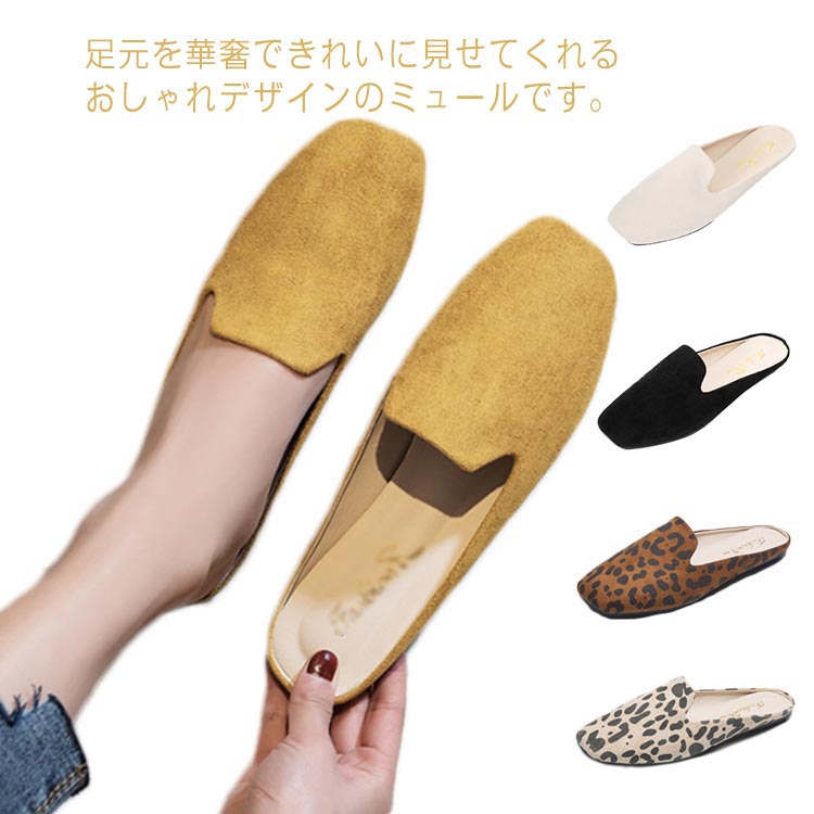 レディース スクエアトゥ サンダル ぺたんこ 痛くない ミュール靴 レディース靴 ミュール