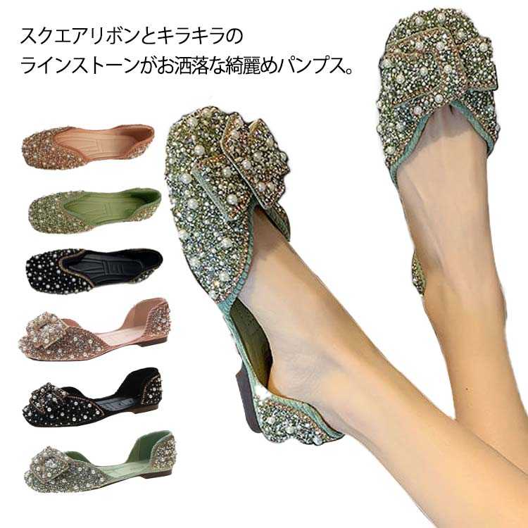 パール ローファー 痛くない ぺたんこ ビジュー 柔らかい ラインストーン キラキラぺたんこパンプス