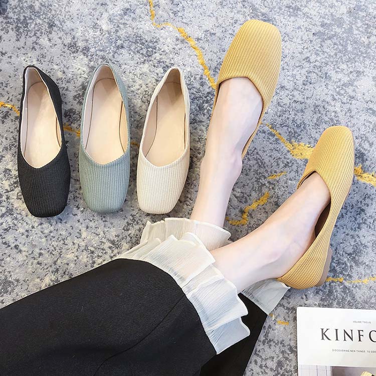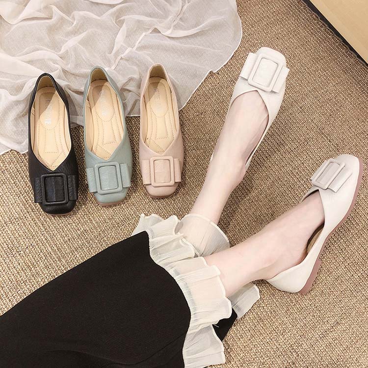 フラットシューズ レディース ぺたんこ カット シューズ スクエアトゥ 2 ロー靴 レディース靴 パンプス
