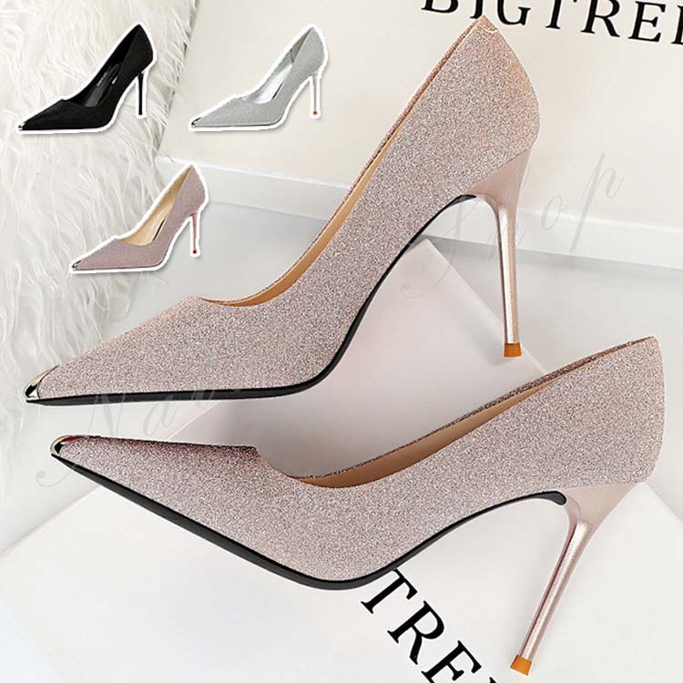 美脚パンプス レディース パンプス 歩きやすい ブライダルシューズ グリッター ラメ ハイヒール 痛くなりにくい キラキラ ポインテッドトゥ 靴 ヒール 痛くない