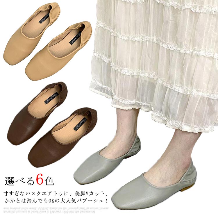 バブーシュ 美脚Vカット ぺたんこ スクエアトゥ シューズ フラット シューズ すり靴 レディース靴 パンプス