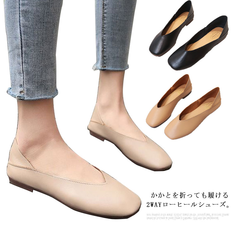 フラットシューズ レディース ぺたんこ Vカット シューズ スクエアトゥ 2way ロー靴 レディース靴 パンプス