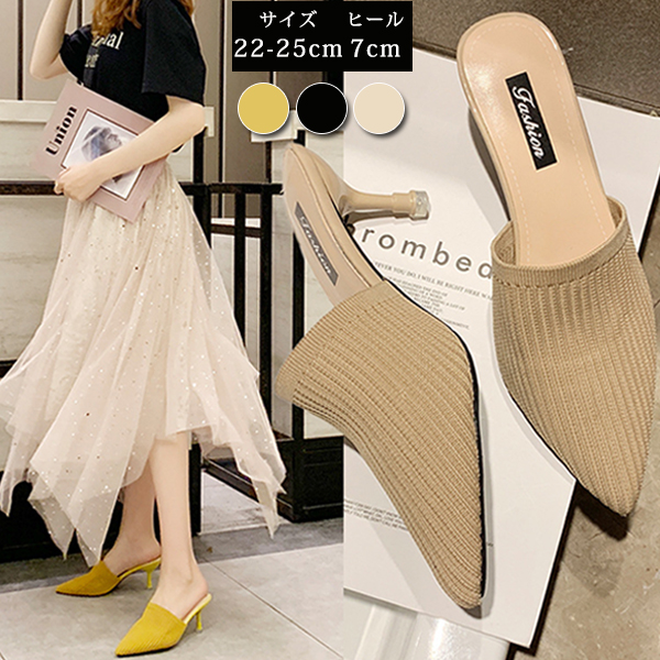 スリッパサンダル パンプス ヒールサンダル ハイヒール ポインテッドトゥ 7ヒール靴 レディース靴 パンプス