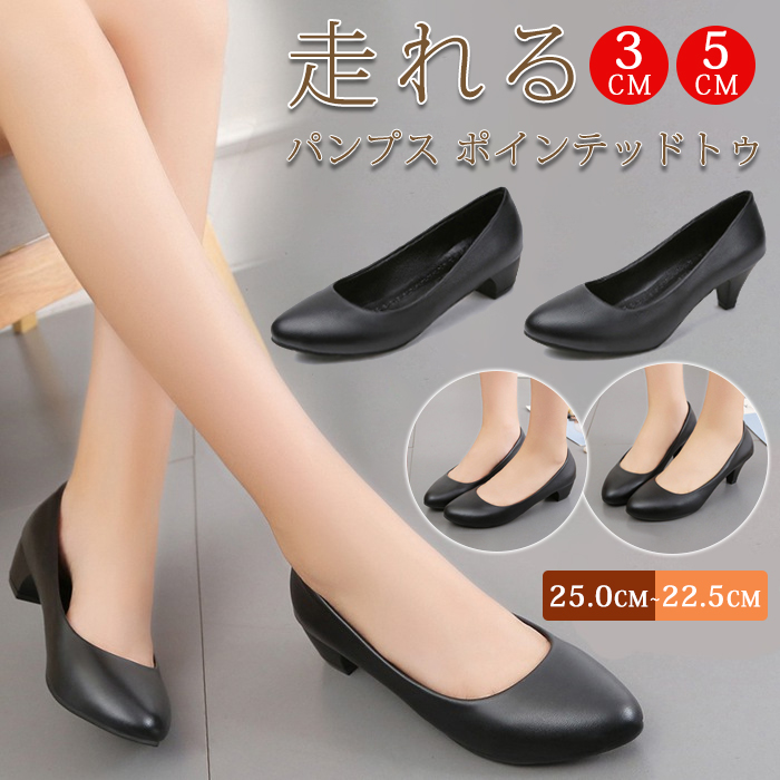 パンプス ポインテッドトゥ 太 3CM 5CM ヒール ローヒール 走れる 柔らか 痛くない 黒 ブラック春 夏 秋 冬 リクルート 面接 就職 仕事 通勤 OL 軽い ビジネス フォーマル 新生活