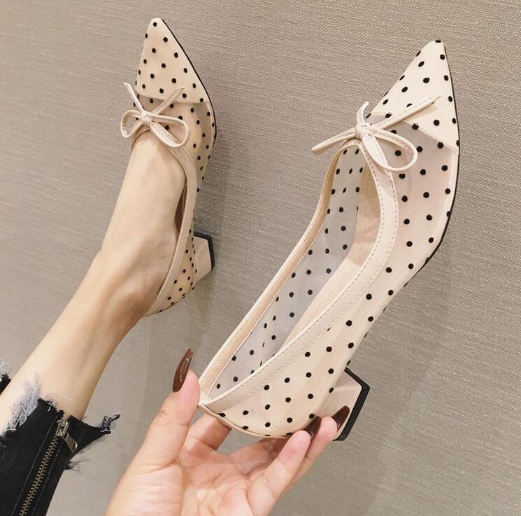 ドット柄シースルーパンプス 大きいサイズ痛くない オフィス ローヒール ぺたんこ バレエシューズフラットパンプス ポインテッドトゥ