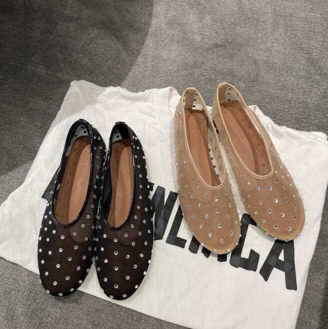 シースルーパンプス 痛くない オフィス ローヒール ぺたんこ ラインストーンバレエシューズ靴 レディース靴 パンプス