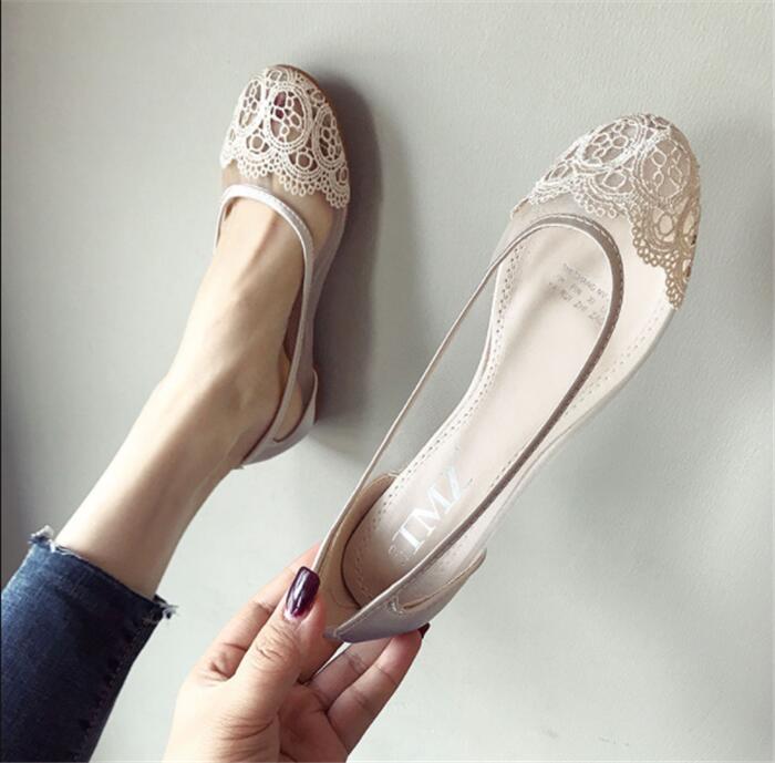 シースルーパンプス レース大きいサイズ痛くない オフィス ローヒール ぺたんこ バレエシューズフラットパンプス ラウンドトゥ