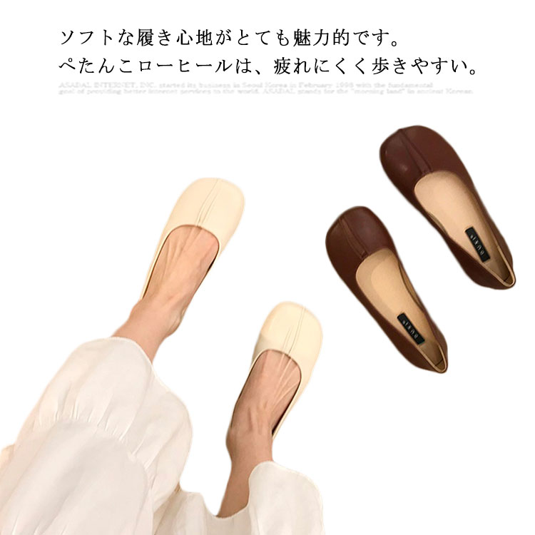 パンプス レディース シューズ ローヒール ぺたんこ 歩きやすい パンプス おしゃれ 結婚式 二次会 お呼ばれ 歩きやすい 痛くない 春 夏 旅行 柔らかい 日常 韓国 美足 通勤靴 2色 お洒落 お