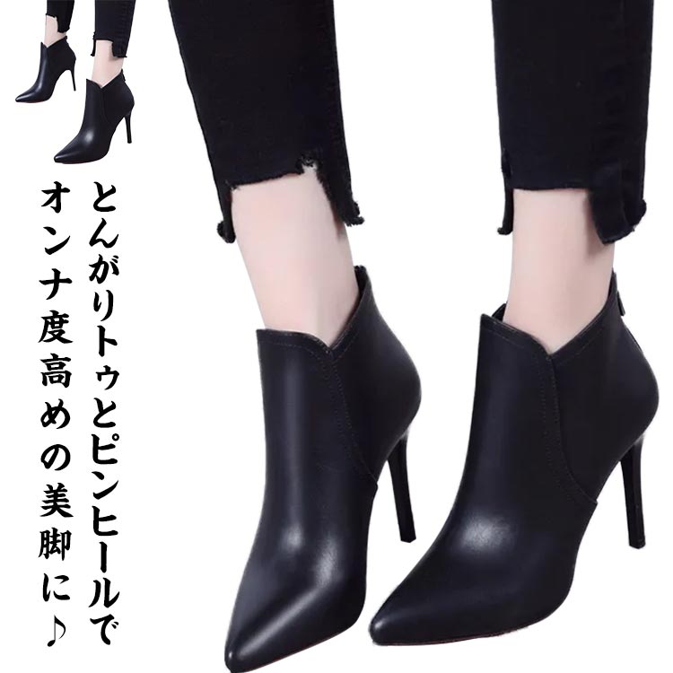 選べる裏起毛 内寸220-250mm 美脚ショートブーツ ヒール7cm 9cm靴 レディース靴 パンプス