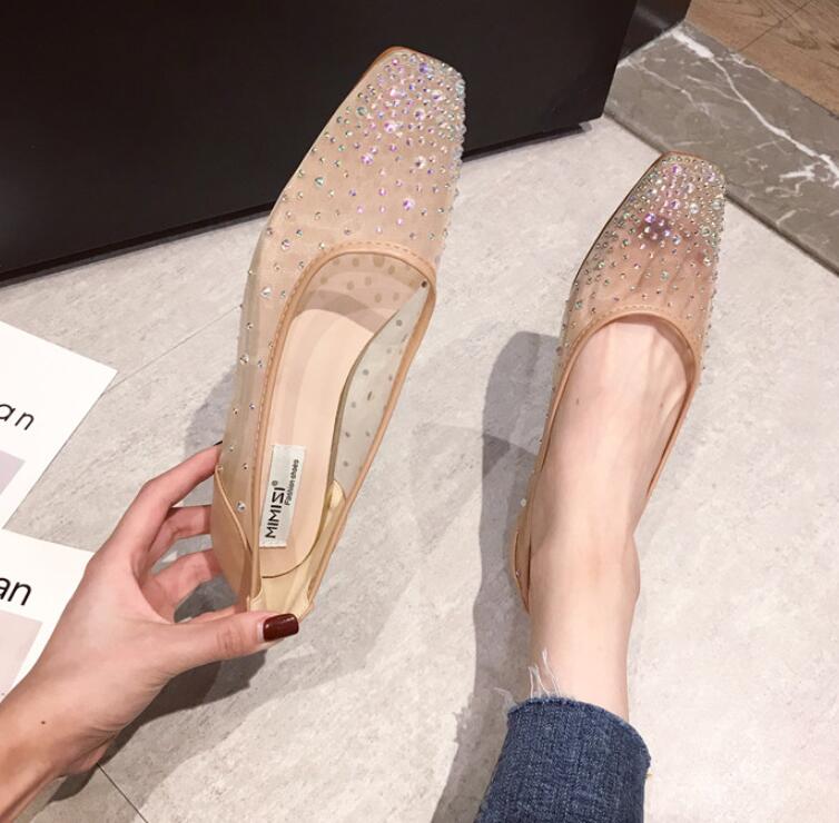 ラインストーンパンプス フラットシューズ レディース 痛くない透け感のあるデザイン靴 レディース靴 パンプス