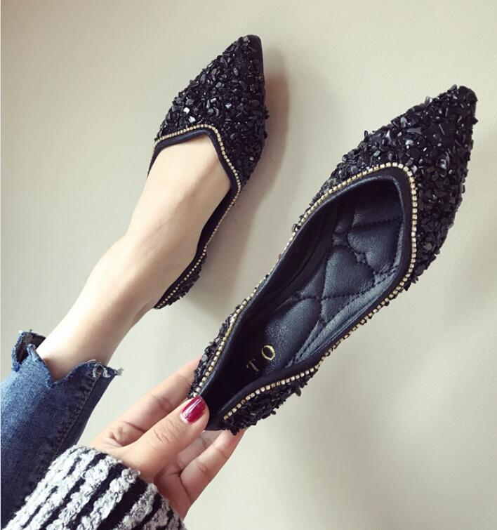 全3色 パンプス 痛くない オフィス ローヒール ぺたんこ ビジューバレエシューズフラットパンプス ポインテッドトゥとんがり 走れる ぺたんこクッション入りフラットシューズ 通勤 パンプス通勤 通学柔