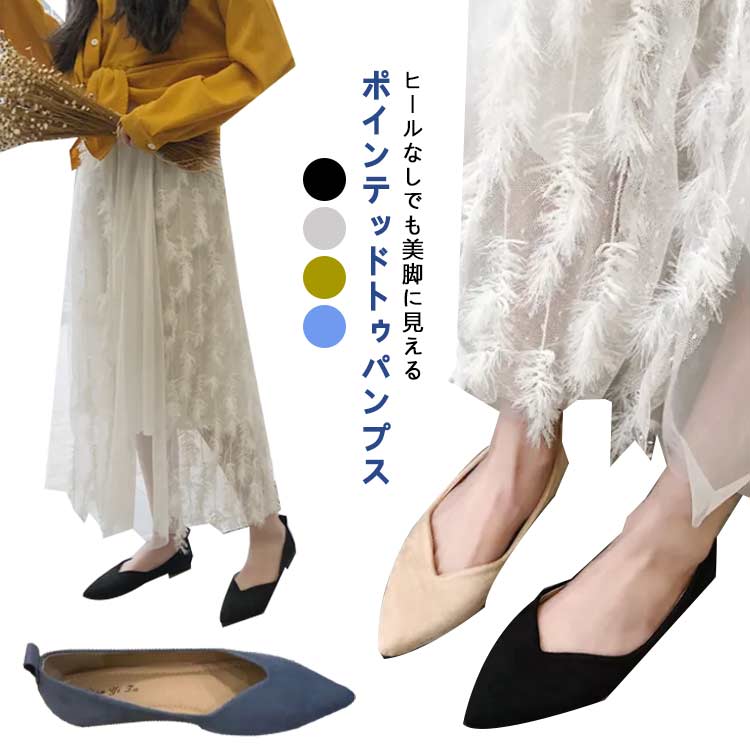 ポインテッドトゥ 内寸225-250 仕事 美脚 フラットパンプス靴 レディース靴 パンプス