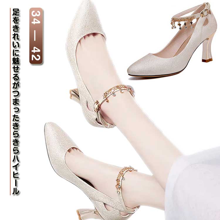 大きいサイズ 美脚 ヒール5 6.5 8.5 ポインテッドトゥ 美脚 レディース 走れる 小さいサイズ 結婚式 おしゃれ 花嫁 グリッター パンプス