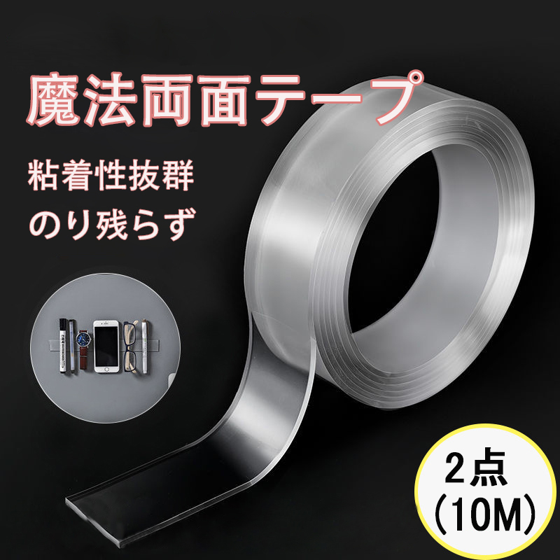 両面テープ 超強力テープ 防災対策 繰り返し利用可 絨毯 屋外 多機能テープ 机足固定 防水 洗濯可 魔法のテープ 超強力 *2 はがせる 2個セット 透明