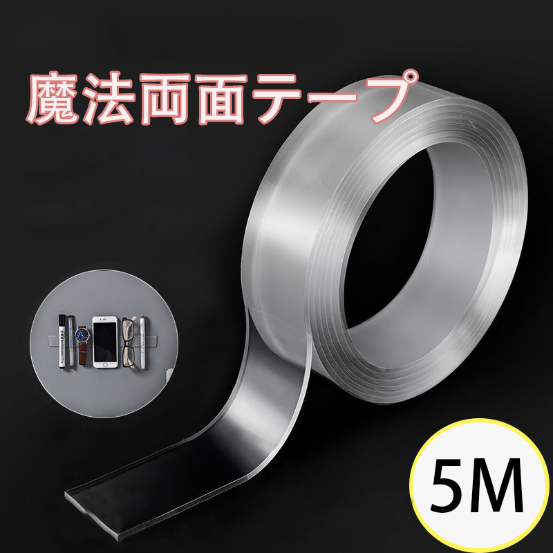 両面テープ 多機能テープ 超強力 屋外 超強力テープ 長さ5M 魔法のテープ 養生テープ はがせる 透明 防災対策 のり残らず はがせるテープ 防水 洗濯可 繰り返し利用可 滑り止めテープ 耐熱強力