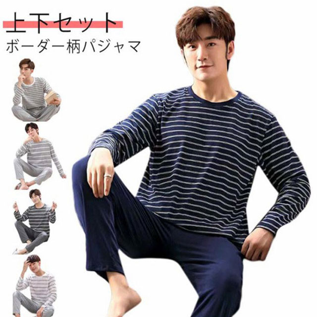 ボーダー柄パジャマ メンズ ルームウエア 春 夏 秋 冬 部屋着 大きいサイズ シンプル 寝間着 カジュアル