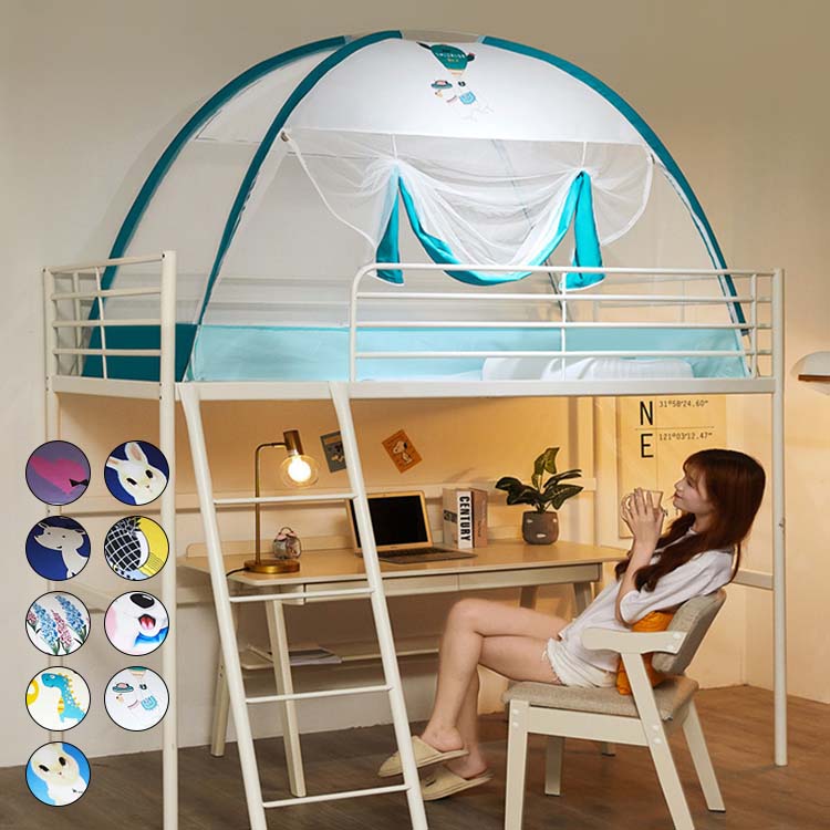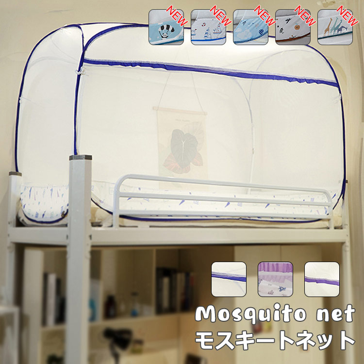 モスキートネット ワンタッチ 蚊帳テント 学生 寮 二段式ベット シングル 軽量 天蓋 メッシュ 80*190*100 スタンドタイプ 簡単設置 蚊 虫 ムカデ 防止 安眠