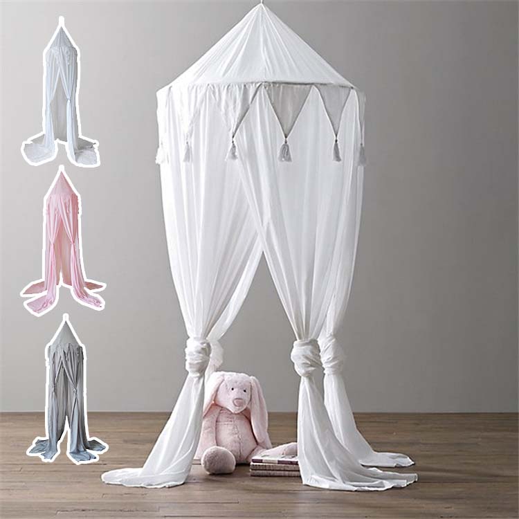 モスキートネット 室内テント スリーピングカーテン 北欧風 インテリア 蚊帳 手縫う逆トライアングル フリンジ 無地 遮光 日よけ 虫除け シンプル 出産 卒業