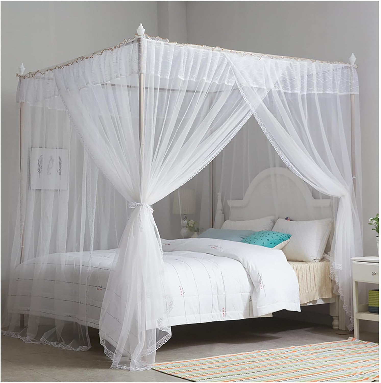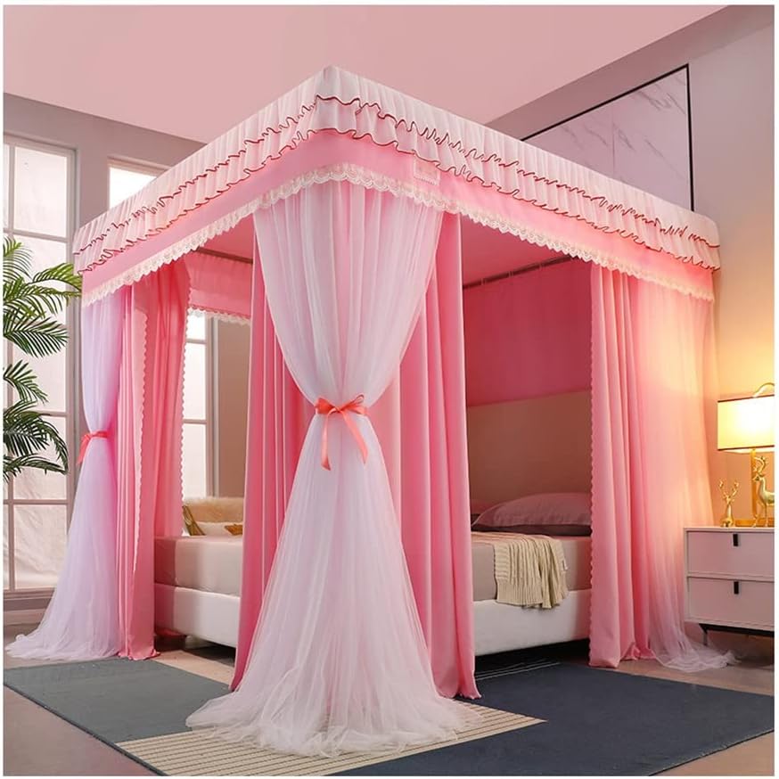 天蓋 4コーナーポストベッドキャノピー蚊帳、春夏秋冬の防塵遮光ベッドカーテン、女の子のシングルダブルベッドの寝室の装飾