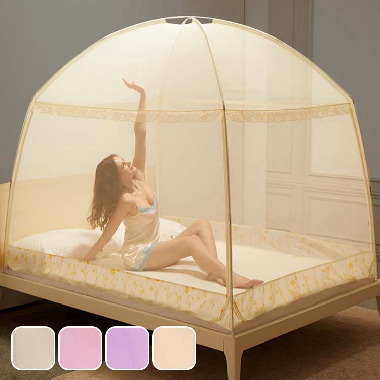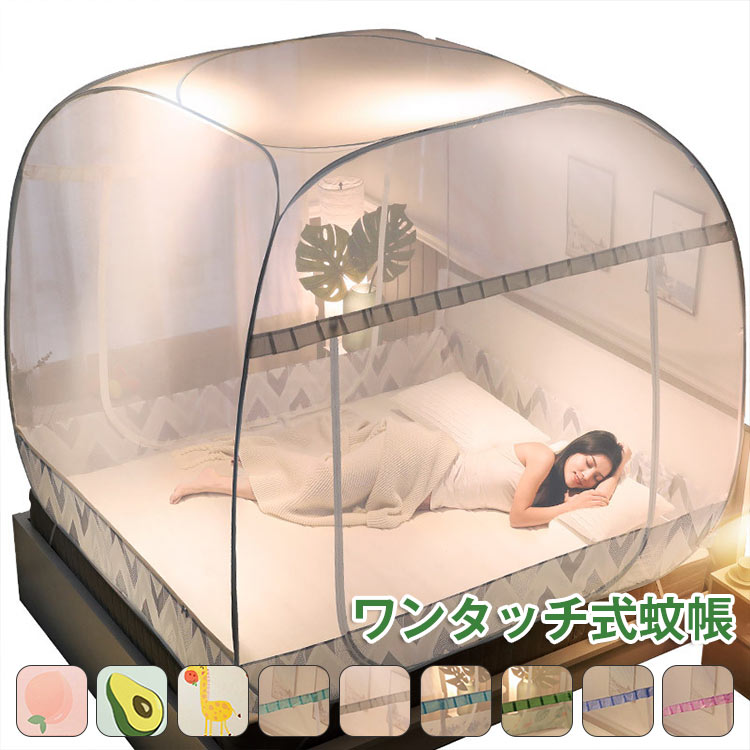 蚊帳 カヤ シングル テント ベッド用 キャンプ式 モスキートネット ワンタッチ ダブル セミダブル 虫よけ 家族 折りたたみ 可愛い かわいい 蚊帳テント ファスナー付き