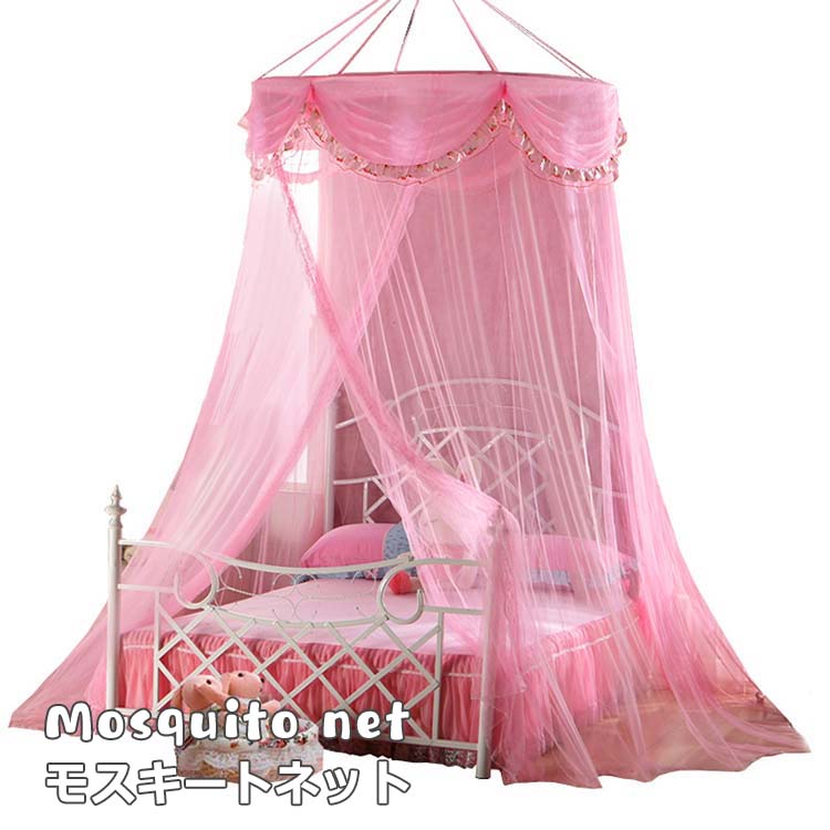 モスキートネット モスキートテント 蚊帳 スリーピングカーテン キャノピー ベットルーム 二段式ベット レース フリル メッシュ 円形 ゆったりサイズ 姫系