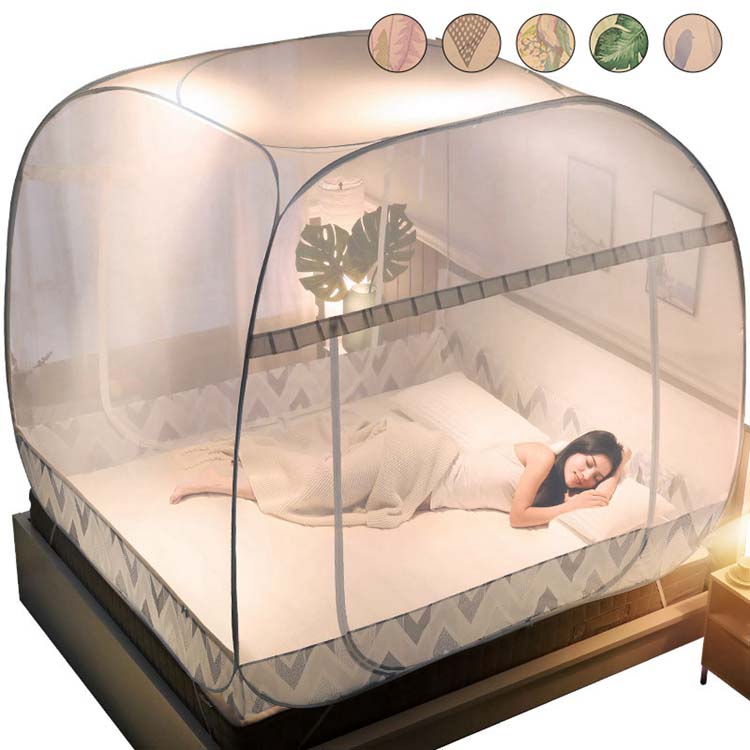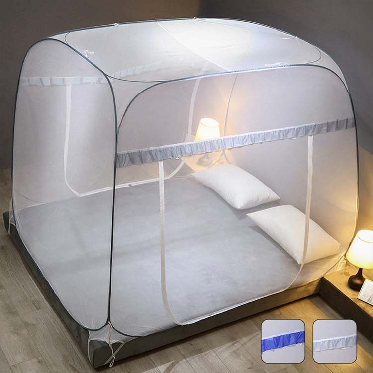 蚊帳テント シングル ダブル 正方形 ファスナー付き 底生地付き 無地 ムカデ対策 防蚊 ワンタッチ 高密メッシュ ドアタイプ フリル 虫除け 蚊よけ 家用 大人 兼用 広い 夏