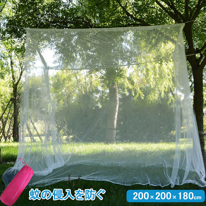 蚊帳 アウトドア モスキートネット キャンプ用蚊帳 かや 大判 ワイドサイズ 200*200*180cm 防虫 防蚊