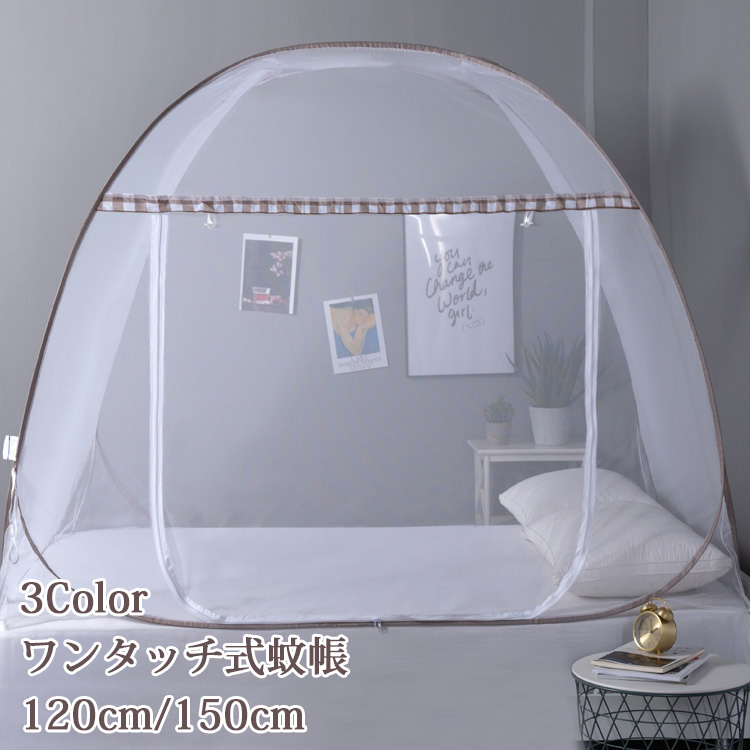 蚊帳 ワンタッチ 折りたたみ 蚊帳 120cm 150cm かや キャンプ式 底つき 防虫 蚊の侵入に防ぐ 密度高いメッシュ シングルベッド