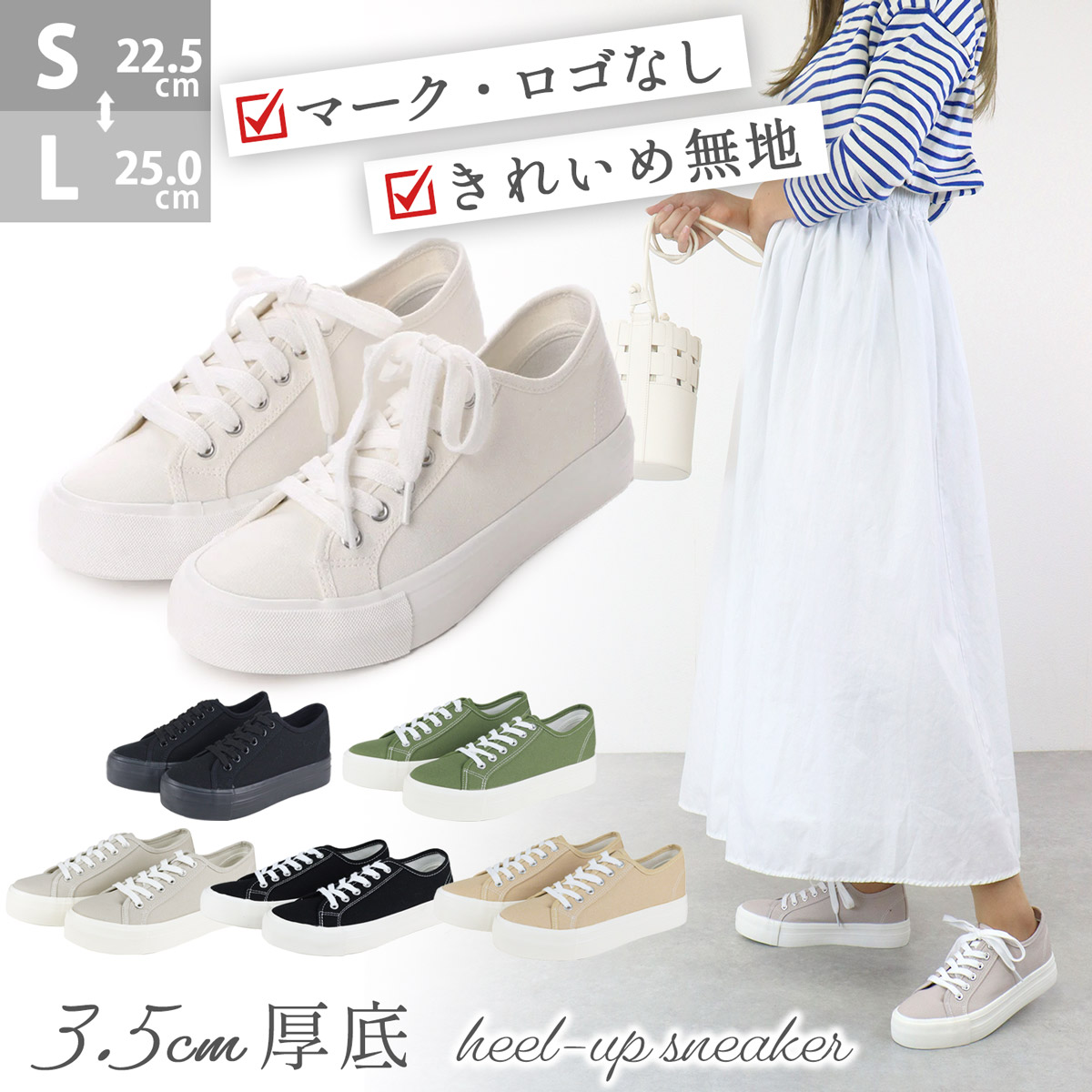 靴 レディーススニーカー シューズ 3センチ ボリューム プラットフォーム ソール キャンパス 丸洗い 清潔 疲れにくい 紐 大人女子 楽 定番