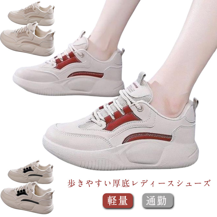 厚底スニーカー レディース ダッドスニーカー ダッドシューズ ライン入り 軽量 歩きやすい 痛くない