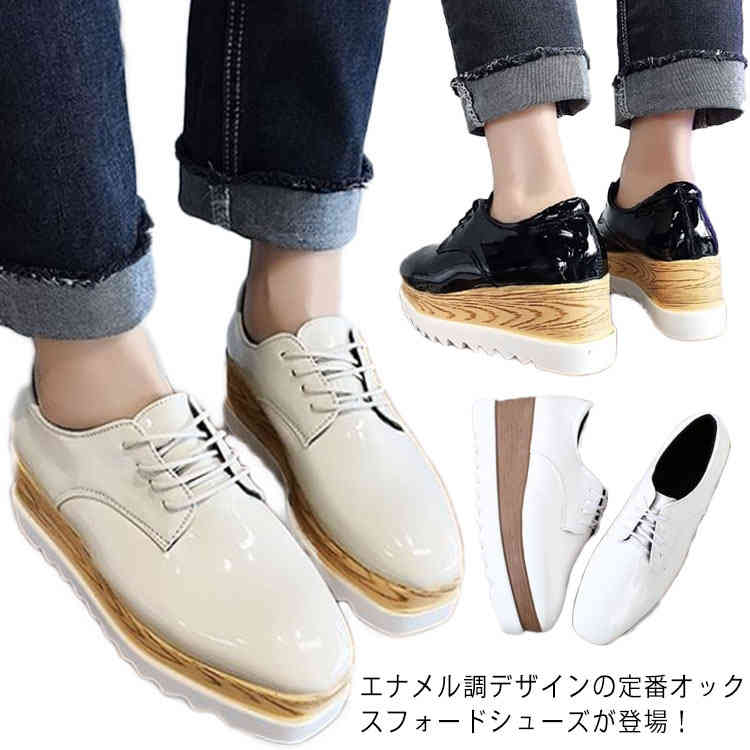 厚底 カジュアル レディース インヒール オックスフォード インヒール 靴 コンフォートシューズ エナメル 大人 上品 シューズ