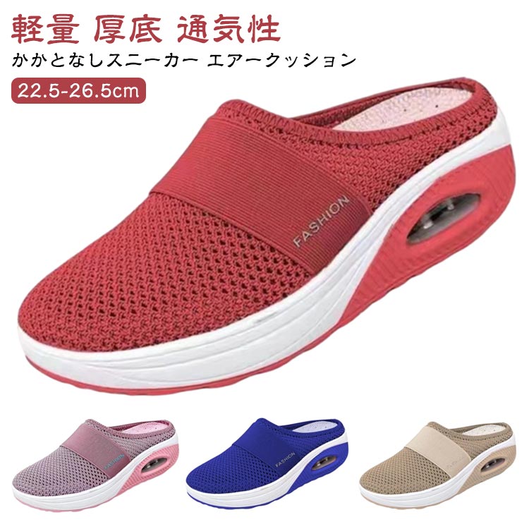 かかとなしスニーカー シューズ 厚底 通気性 散歩 スポーツ おしゃれ アウトドア 22.5-26.5