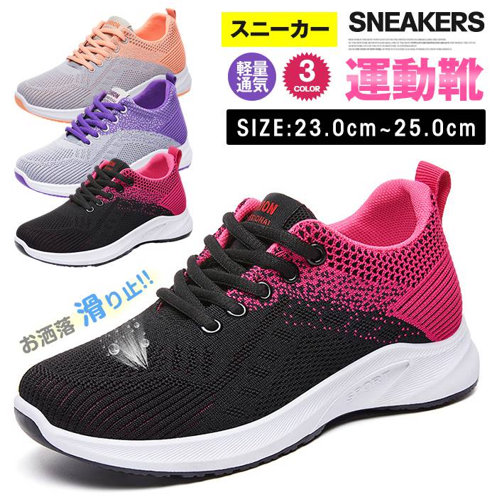 スニーカー レディース ランニングシューズ 通気 滑り止 スポーツシューズ ジョギング ウォーキング 運動靴 お洒落
