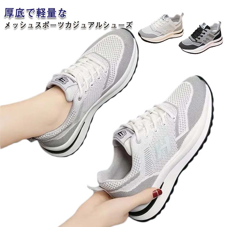 厚底スニーカー スニーカー レディース 厚底靴 軽量 通気 防滑 ランニングシューズ インヒール レースアップ スポーツ ウォーキング オシャレ 人気 美脚 歩きやすい 身長アップ