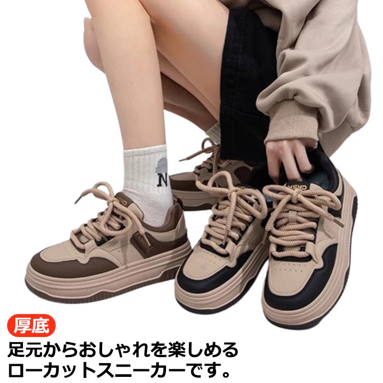 スニーカー レディース 厚底 カジュアルシューズ ローカット 配色スニーカー ウォーキング靴 レディース靴 スニーカー