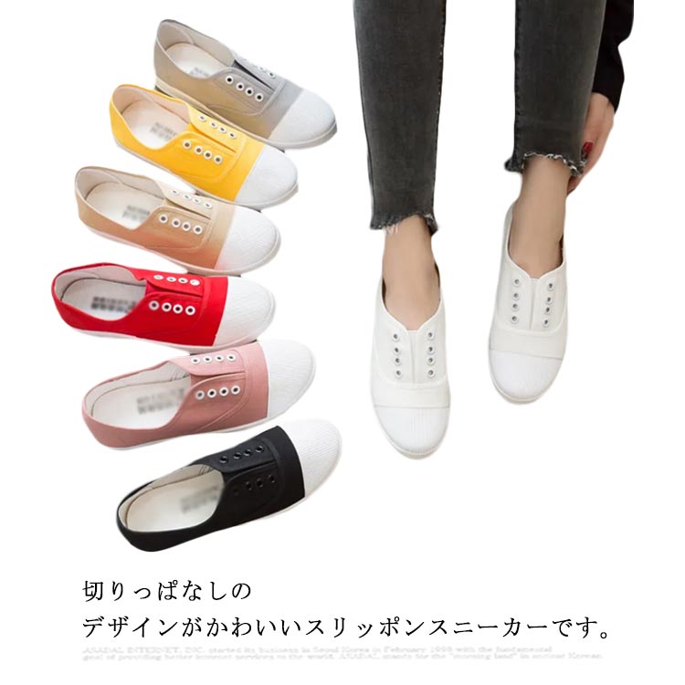 豊富な20色展開 レディース スリッポン スポーツ スニーカー 黒 白 紐なし キャンバス シュ靴 レディース靴 スニーカー