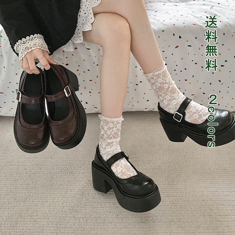 ストラップパンプス おでこ靴 レディース レザー ラウンドトゥ レトロ パンプス 厚底パンプス ロリータパンプス ローファー 厚底靴 学生靴 コスプレ靴 メイド靴 ロリータ靴 美脚 おしゃれ シン