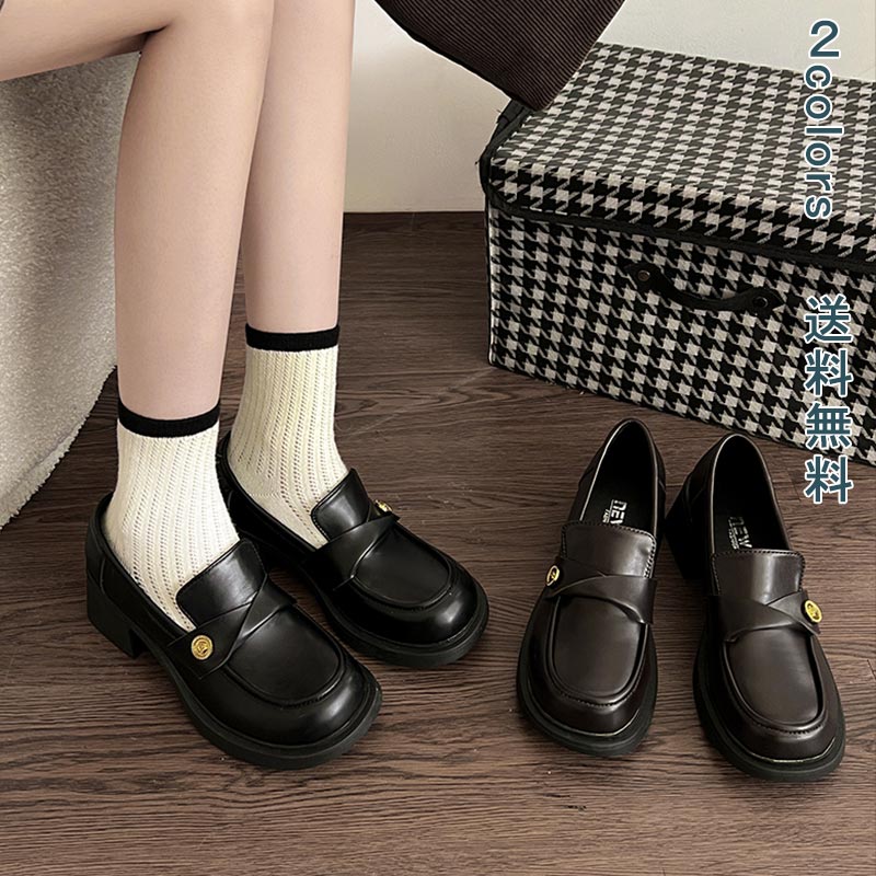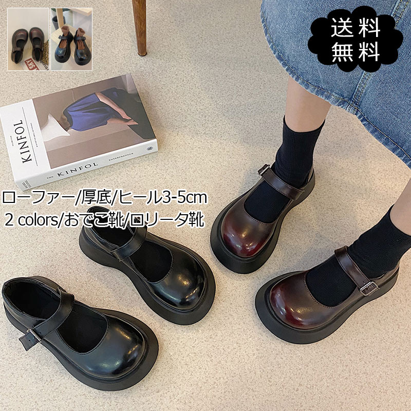 おでこ靴 レディース ローファー ロリータ靴 お嬢様 メイド靴 厚底 ヒール3-5cm ストラップ カジュアル 美脚 歩きやすい きれいめ おしゃれ